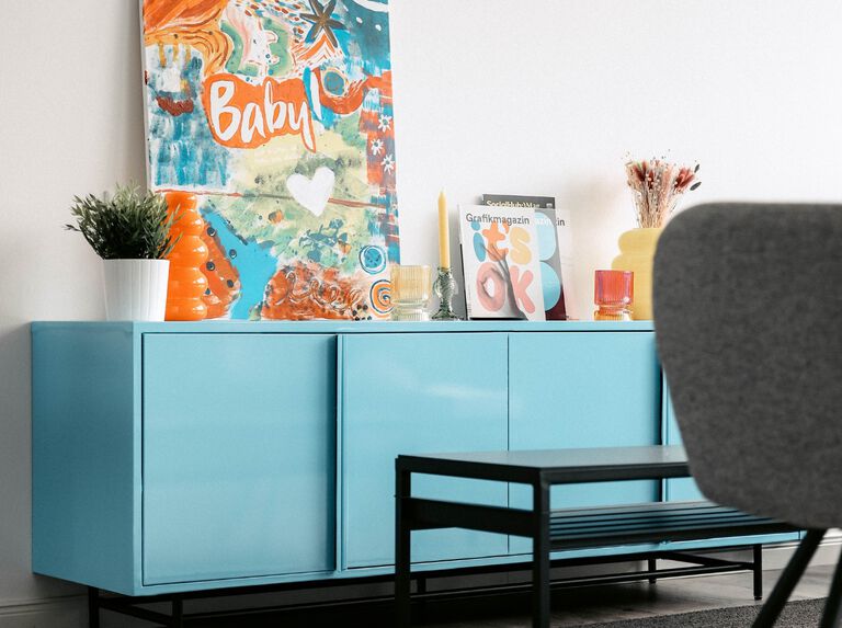 Wähle eine Basis in neutralen oder sanften Tönen – und setze gezielt bunte Akzente: z. B. ein leuchtendes Regal mit d-c-fix Hochglanzfolie oder farbenfrohe Kissen und Teppiche.