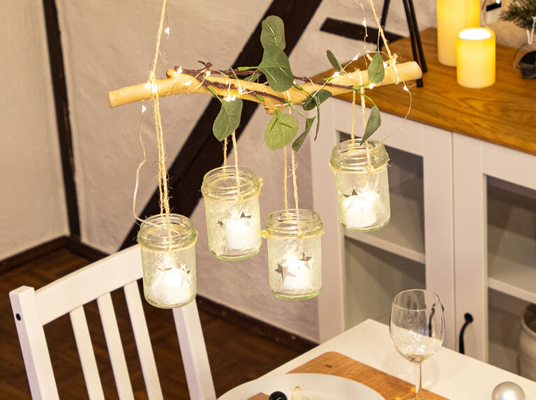 Lorsque tous les bocaux ont une suspension, accrochez-les au bois flotté.